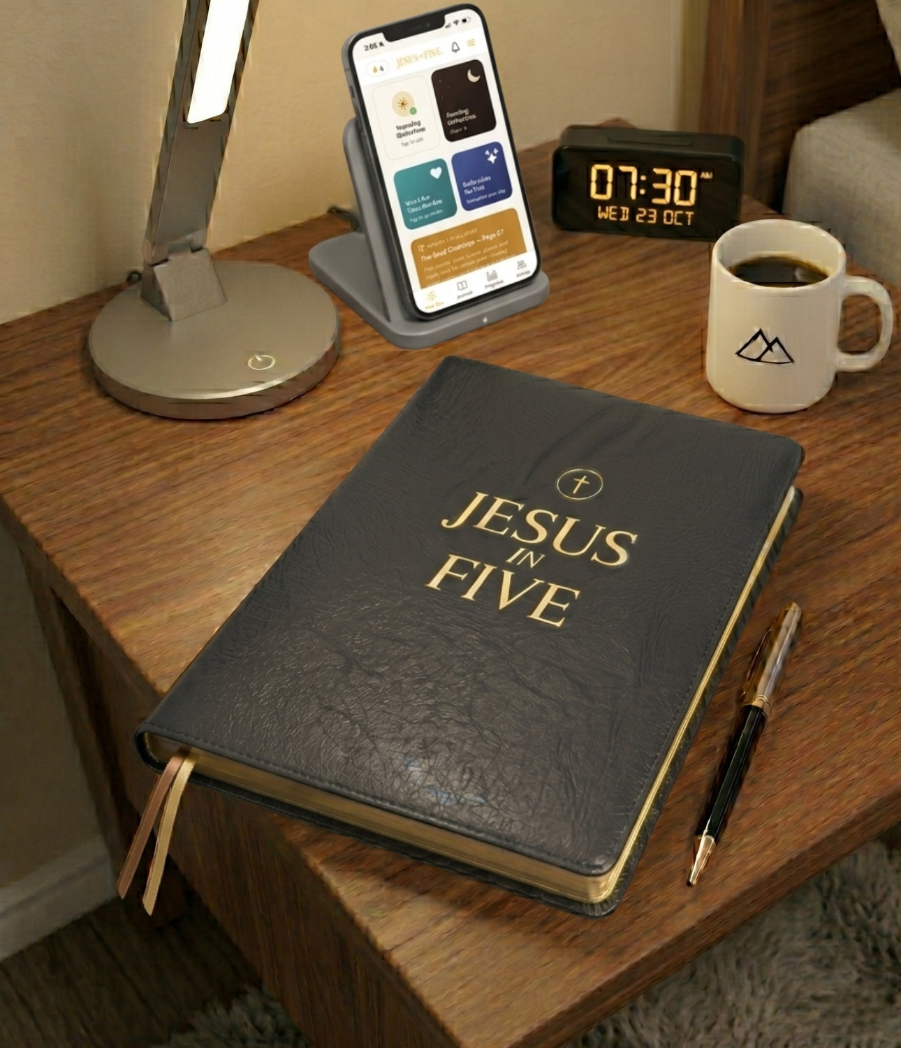 Jesus in Five is a 26-week journal and companion app built around one simple rhythm: five minutes a day, five pillars, one life being transformed.